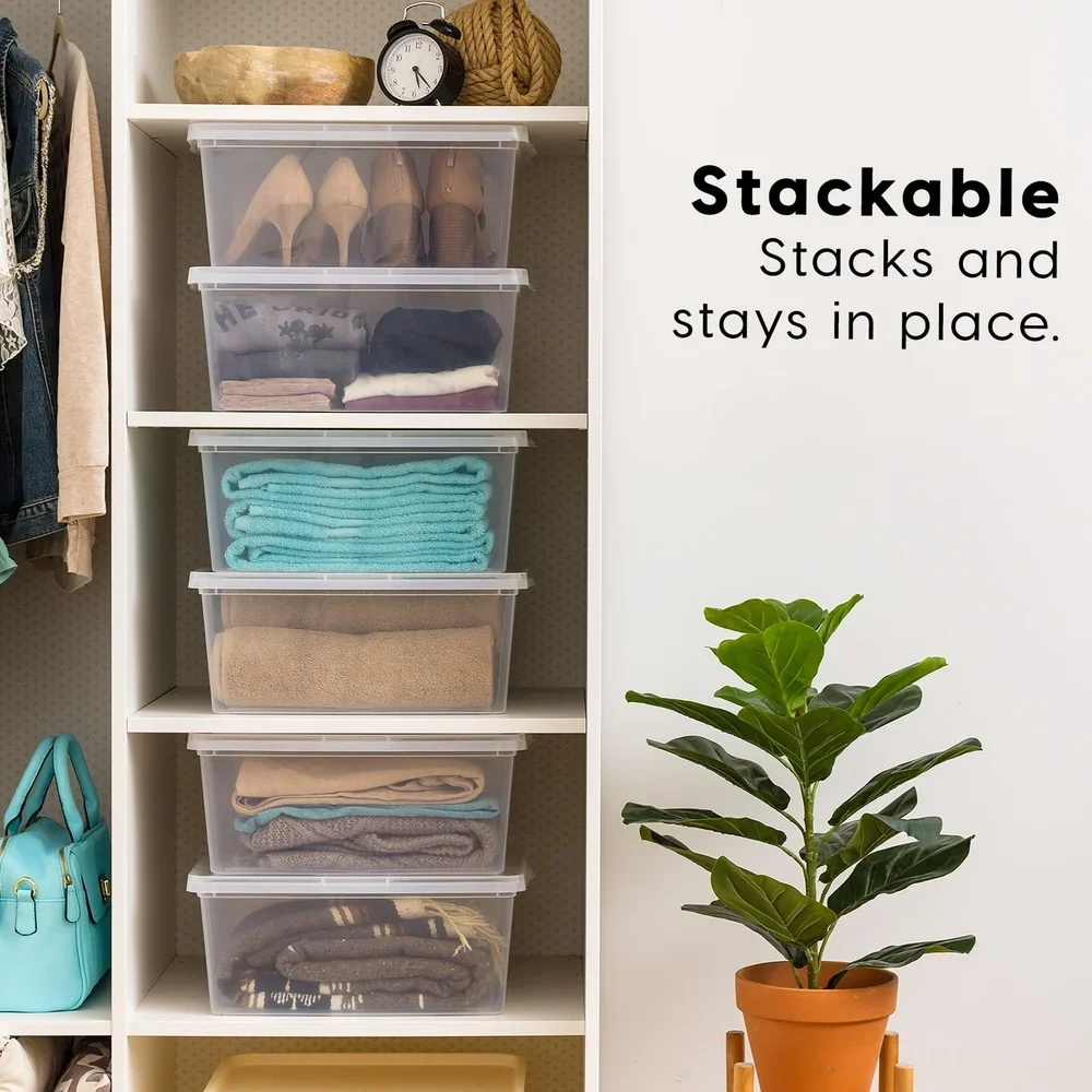 Declutter and organize with ease using these reliable storage containers designed for everyday use in any space. These plastic storage bins with lids are a practical and efficient solution for organizing your home, garage, office, or classroom. Whether you need to store clothing, tools, crafts, pantry goods, or holiday decorations, these storage totes offer the strength, capacity, and convenience you need. Each storage bin features a secure snap lid to keep contents protected from dust, dirt, and moisture, making them perfect for both short-term and long-term use. The storage bins with lids are ideal for storing seasonal items, kids’ toys, school supplies, or office materials. These totes for storage are designed to keep your space neat and your belongings easily accessible. Stackable design allows you to save floor space and maximize vertical storage. These totes stack securely to help organize closets, shelves, pantries, basements, and garages. The sturdy construction of these storage totes with lids ensures long-lasting performance, even with frequent use. Perfect for any room or setting, these storage bins are a versatile choice for dorm rooms, laundry rooms, classrooms, or during a move. Whether you're creating a more organized home or simply need a dependable tote for packing away items, these plastic storage bins with lids are the ideal choice. From everyday essentials to seasonal storage, these bins provide a dependable and stylish way to stay organized. Designed for durability, ease of use, and space-saving efficiency, these storage totes deliver reliable performance and flexible storage for any lifestyle.