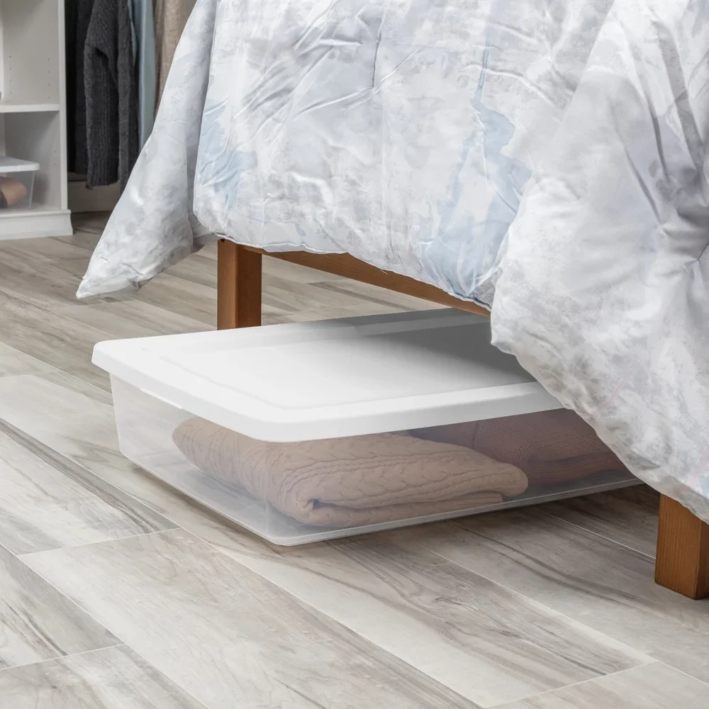 41 Quart Storage Box, Clear Plastic Storage Bin with Snap-on Lid, White