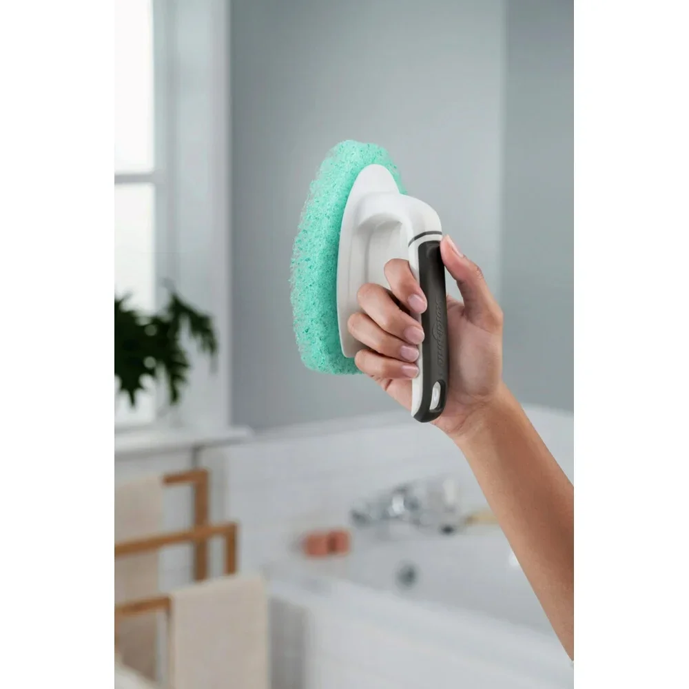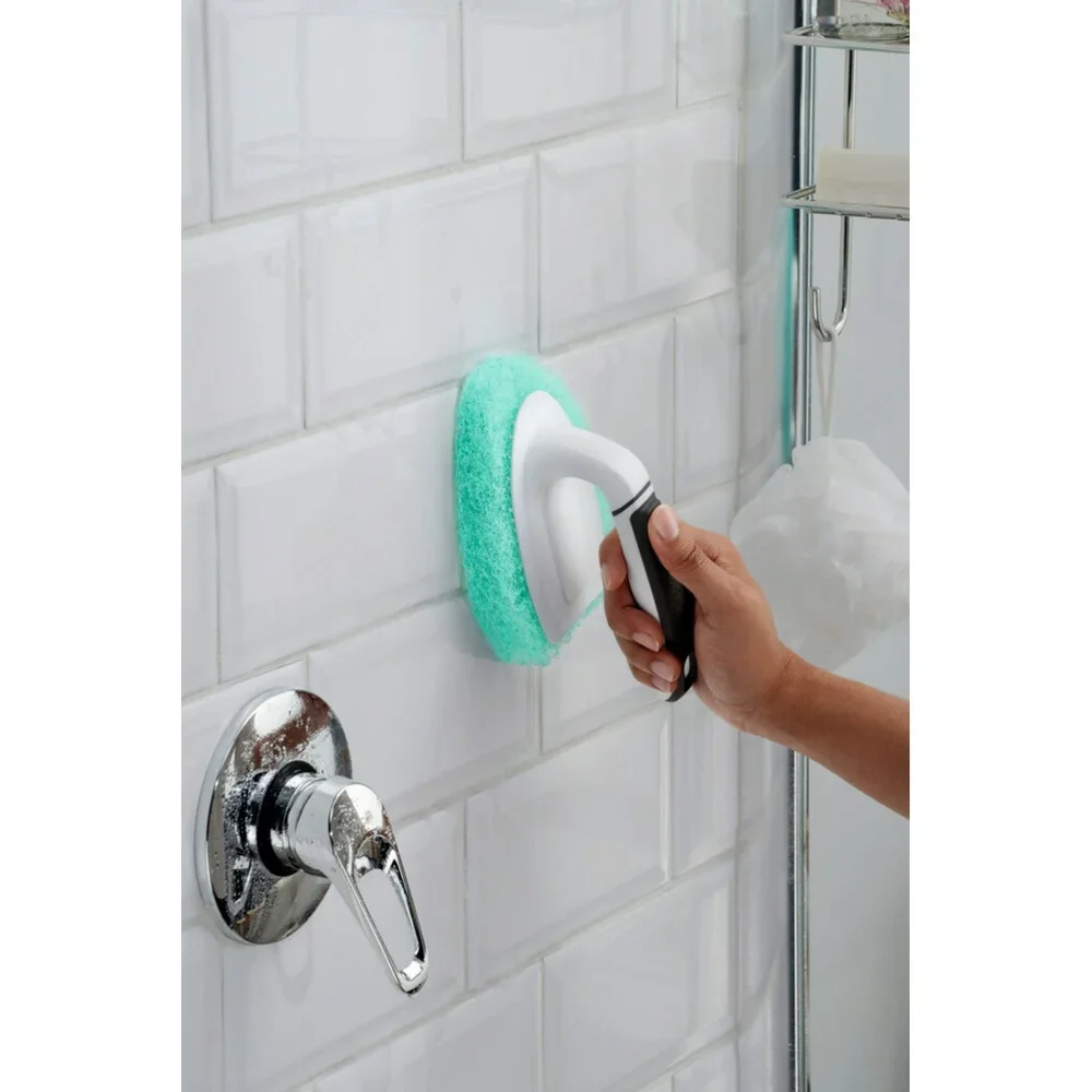 Powers through soap scum, hard water, limescale, and other shower grime without scratching